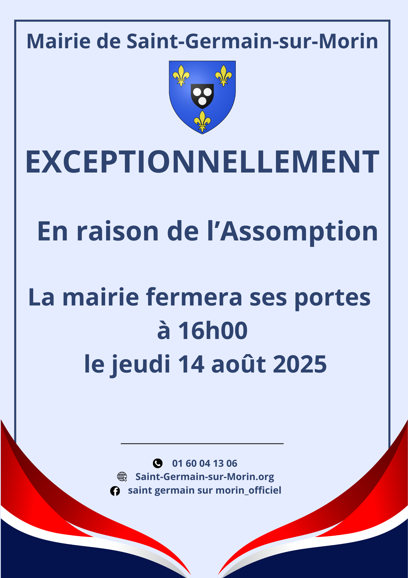 Vous êtes ici : Accueil Découvrir-bouger Animations-festivités Agenda tout sauf event FERMETURES MAIRIE FERMETURES MAIRIE Précédent Suivant