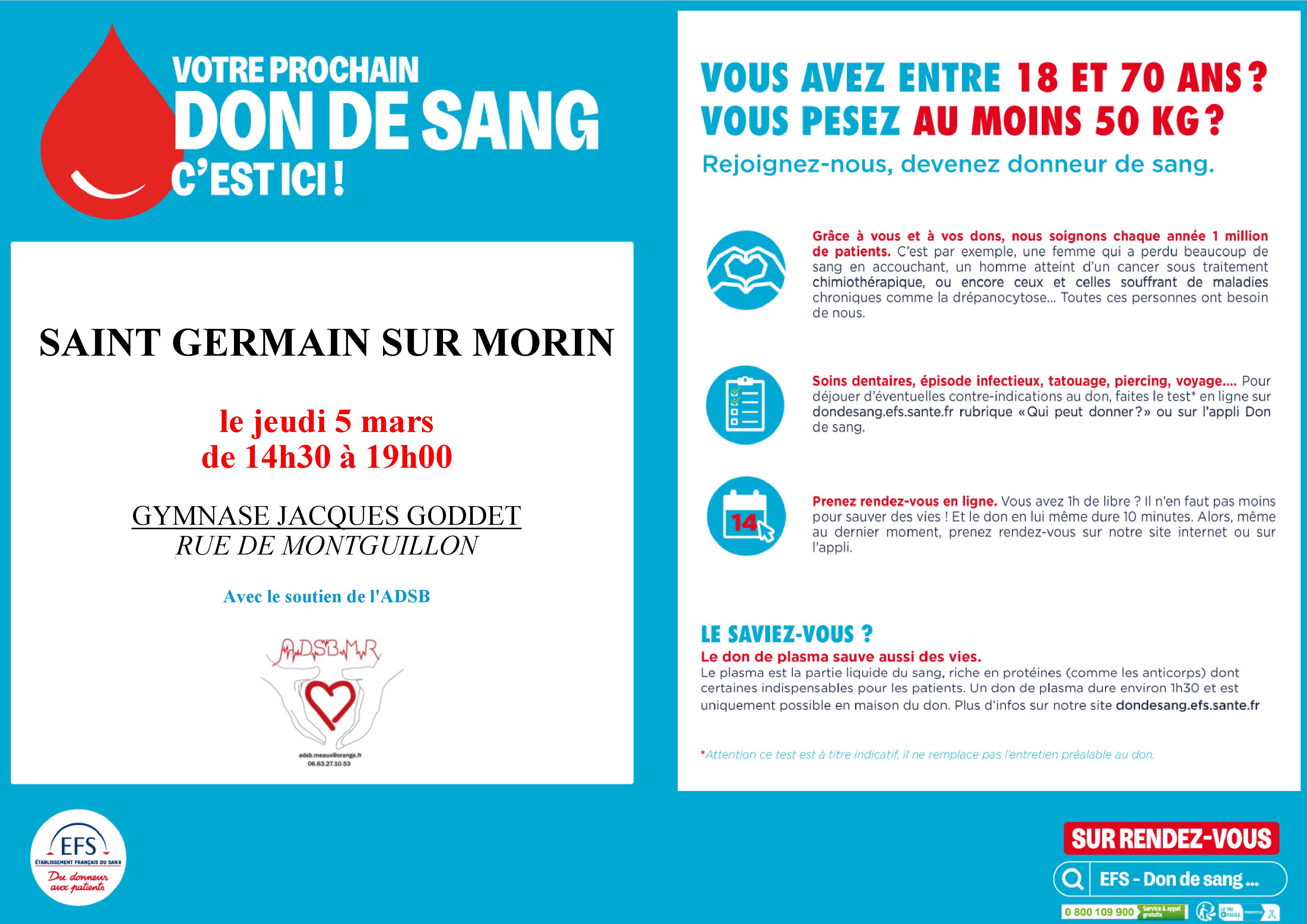 DON DU SANG prochaines collectes