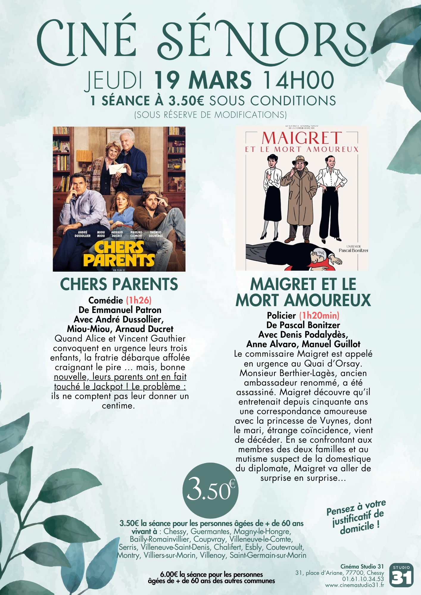 INFO CINÉ SÉNIORS avec Cinéma Studio 31