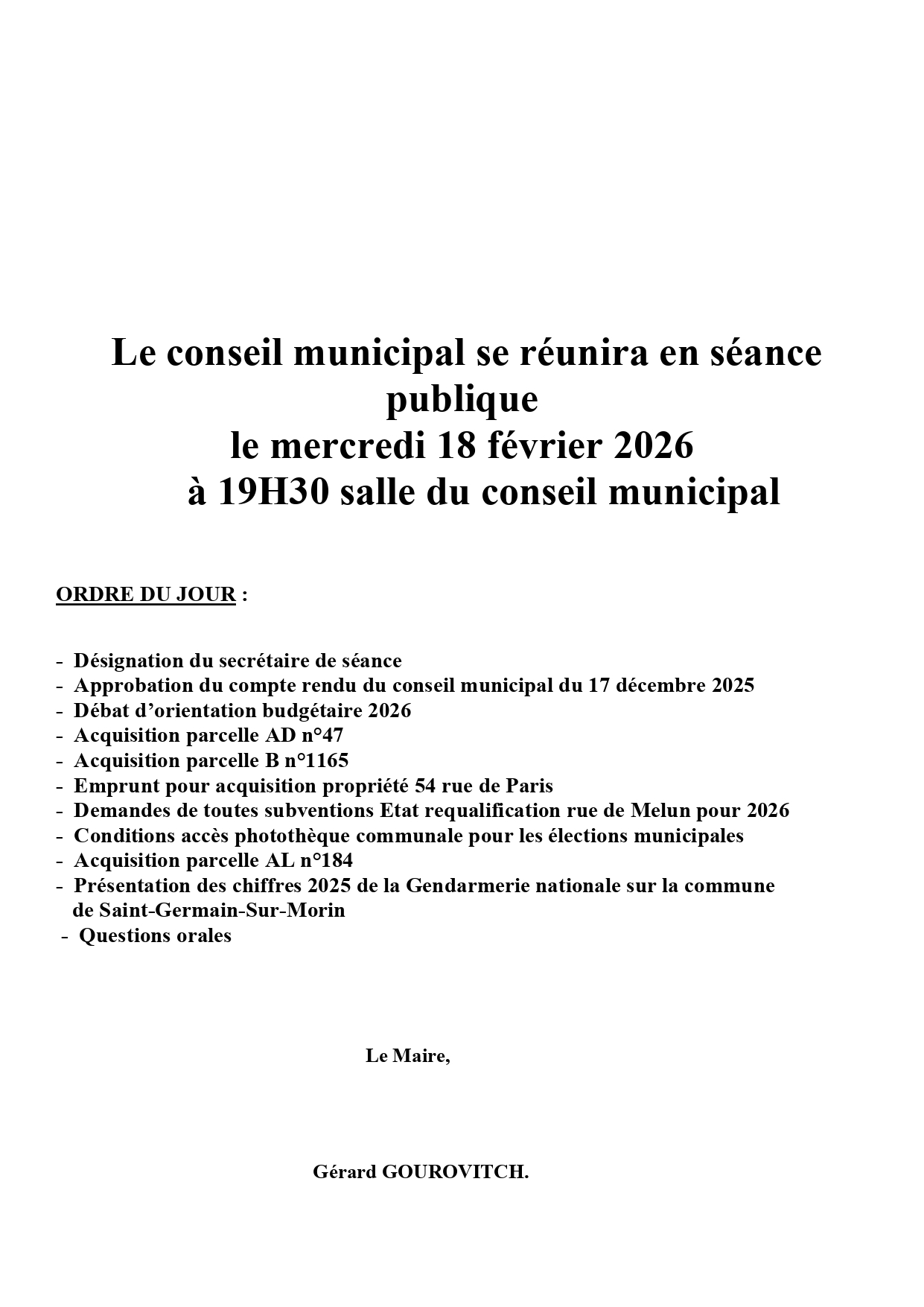 Elle sera ensuite visible sur la page Youtube de Saint-Germain-sur-Morin, lien disponible dans la rubrique Séances du Conseil de notre site internet.