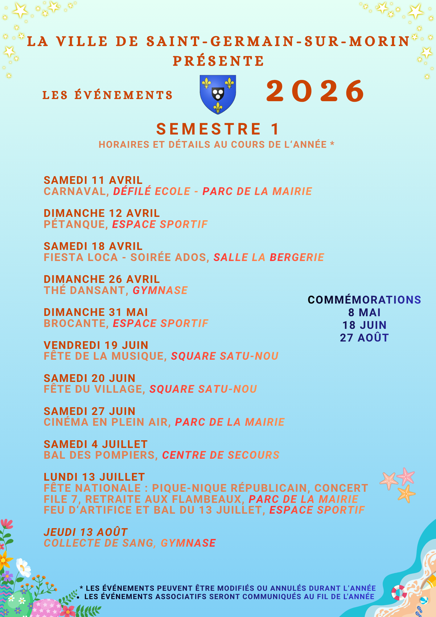 Vous êtes ici : Accueil Découvrir-bouger Animations-festivités Agenda Vos événements 2026 Vos événements 2026 Précédent Suivant